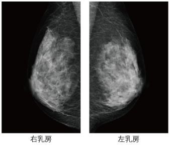 乳房のエックス線撮影のことです。乳房の特徴を考慮した専用の装置を使用します。通常、乳房全体が撮影フィルムの中に全て写し出されるように、複数の方向から撮影を行います。触っても判らないような小さな乳がんはもちろん、しこりをつくらない乳がんを白い影や非常に細かい石灰化の影として写すことができます。