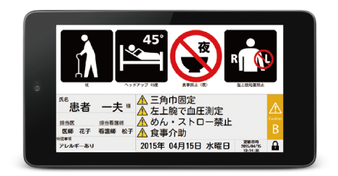 - 注意事項や転倒転落危険度を示すピクトグラムを電子化し、常態表示。