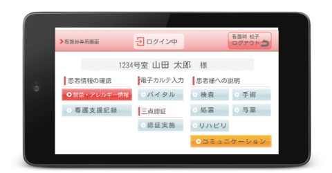 - 患者様ごとの今日の予定、クリニカルパス、バイタル、看護記録、検査結果など。